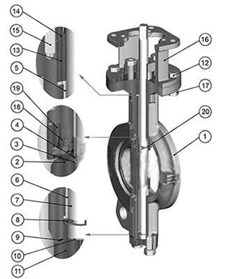 本蝶閥的標準閥座密封使用PTFE和超高分子量的聚乙烯為材料。設計為蓄能唇式結構,不管流體的方向如何,變形后能恢復到原先的位置與 |