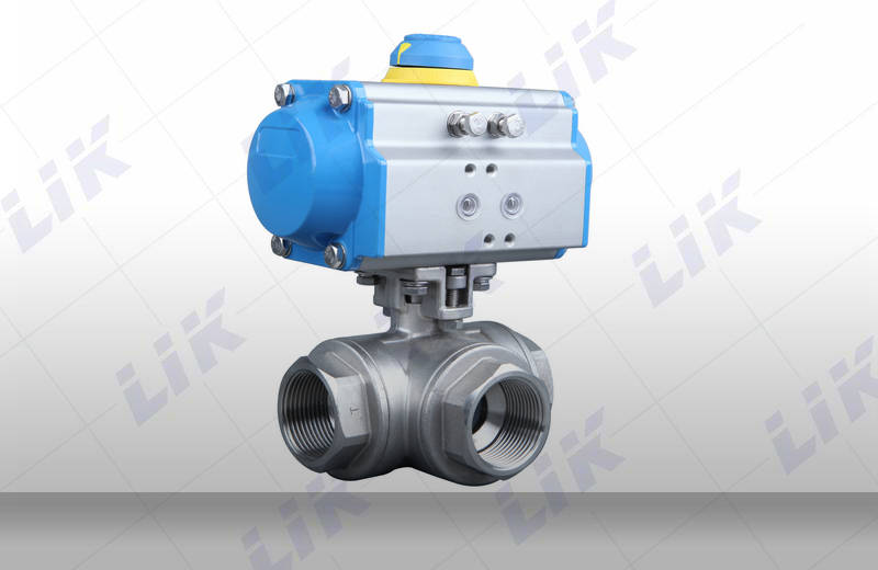 (1)氣動三通內螺紋球閥有兩座和四座密封結構,閥芯孔道有L型和T型兩種結構形式,采用控制閥芯旋轉角度,改變閥芯孔道與管道口的連接狀態,可實現對三條支管不同的組合控制。氣動三通內螺紋球閥流通能力大,可控制氣體、液體、蒸汽,更適用于控制高粘度,纖維顆粒狀的流體。也適用于密封要求較嚴格的場合。