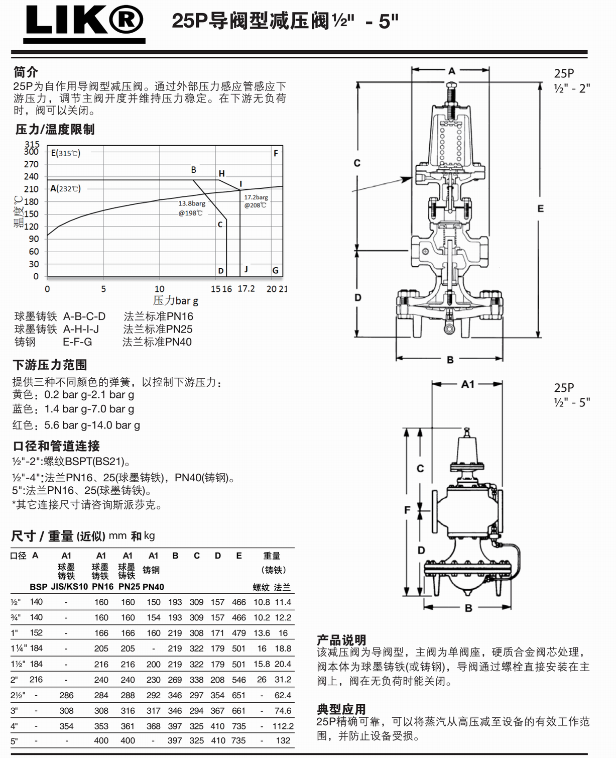 DP143H為高溫的型號,DP163導閥理隔膜式蒸汽減壓閥為全不銹鋼材質。DP163設計主要用于使用潔凈的蒸汽場合,通常其安裝管道和設備等均為不銹鋼,安裝于高精度過濾器(25微米)之后.DP163G為軟密封減壓閥型號,用于壓縮空氣系統或其它工作氣體(不適用于氧氣)