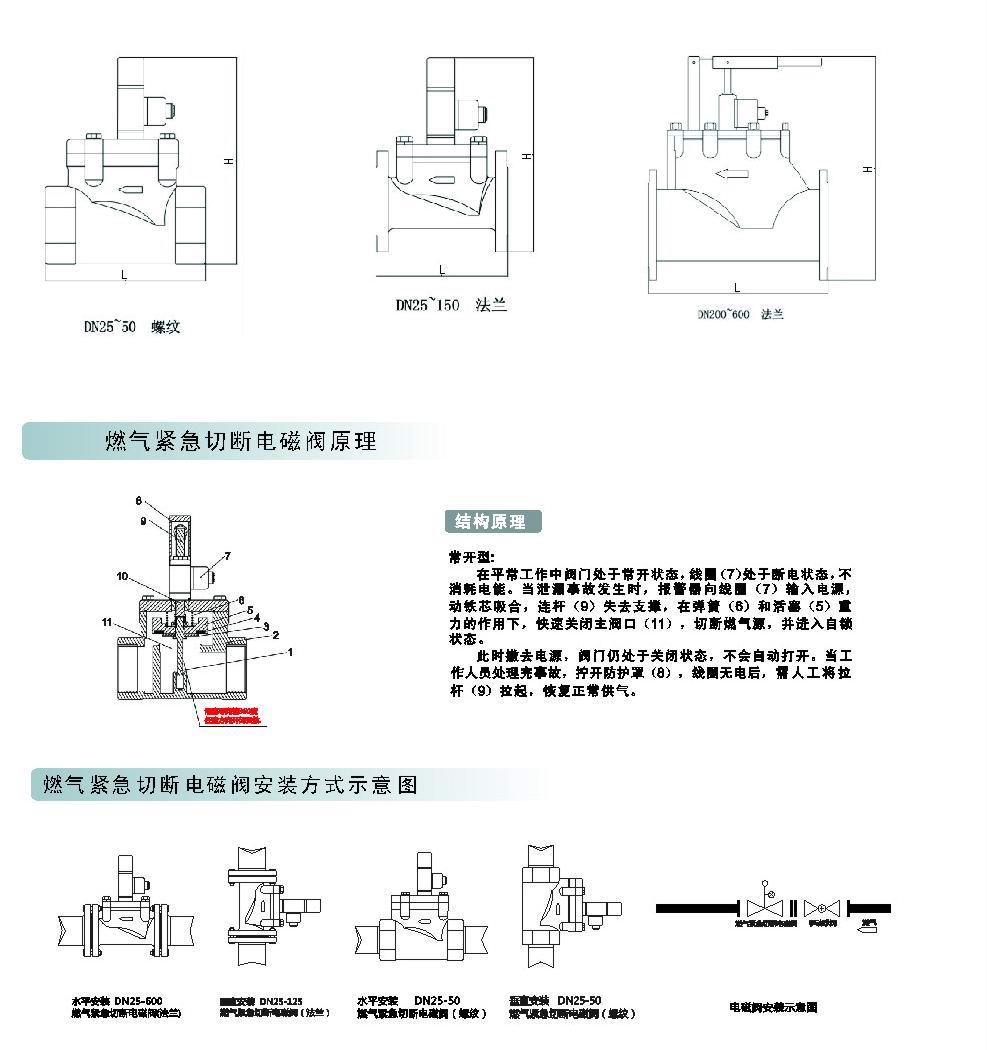 燃氣緊急切斷電磁閥主要用在城市或工廠的燃氣供應管網內,如供氣管網、鍋爐房、燃氣管道等易燃易爆氣體的自控系統中,是安防必備產品,可在中央控制室內集中控制,遠距離遙控緊急關閉事故現場的管線燃氣供應,產品適用于煤氣、天然氣及石油液化氣等。