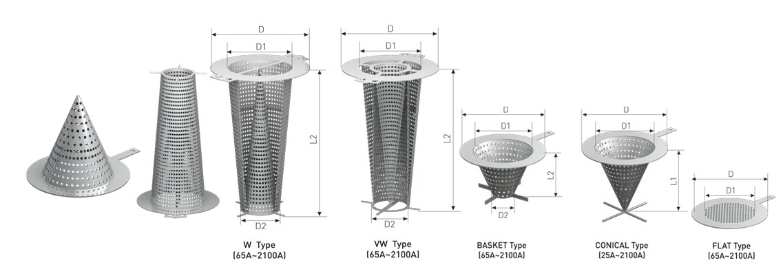 臨時過濾器又稱錐型過濾器,主要由鋼圈、沖孔板、絲網(wǎng)焊制而成。通常用兩片法蘭對夾進行使用,也可做成法蘭連接形式。