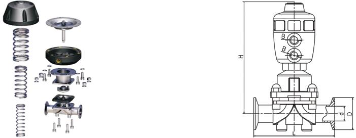 衛生級氣動隔膜閥鋼質部件:不銹鋼304、不銹鋼316L。