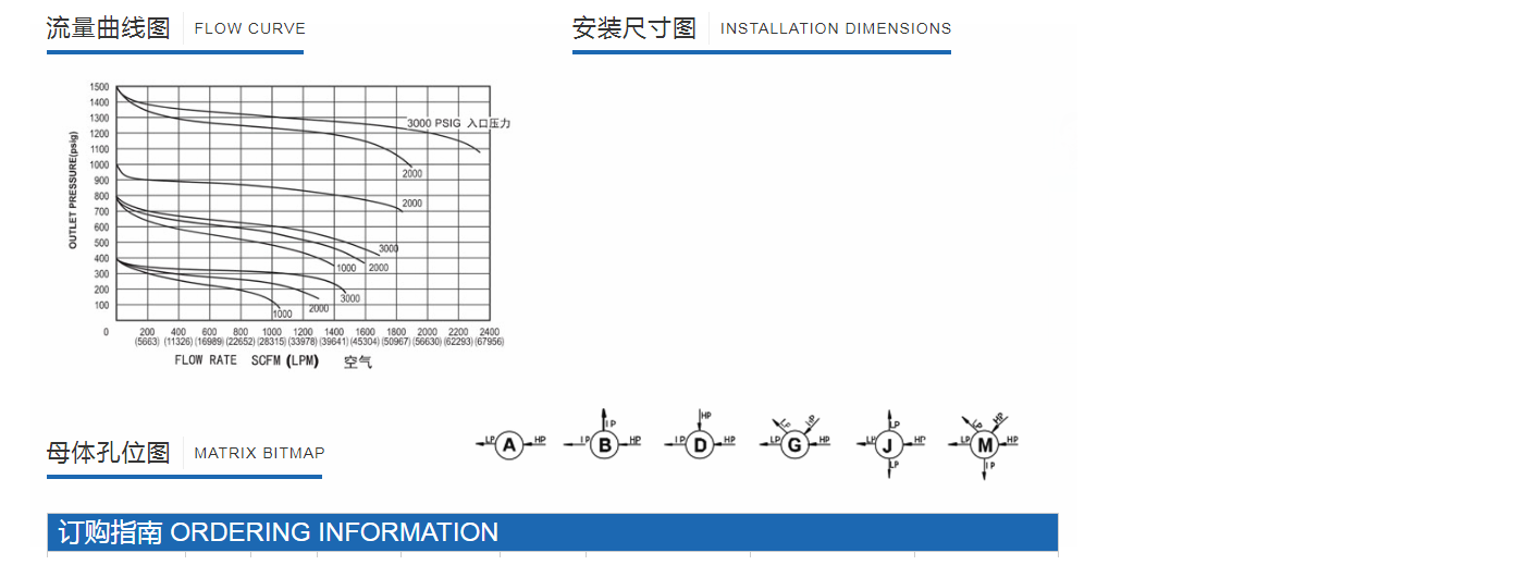 ➣ 最大輸入壓力:不銹鋼4500psig,黃銅3750psig |