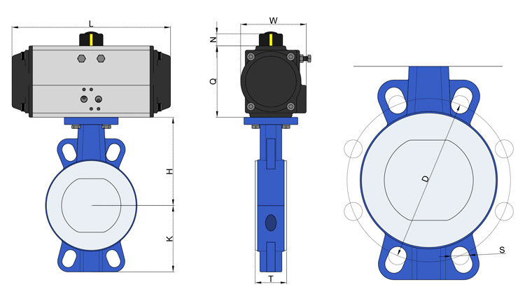 氣動執(zhí)行器通過壓縮空氣提供動力,驅動閥桿帶動閥板進行精確的旋轉運動,從而實現對介質流量的有效控制。該蝶閥整體結構緊湊、外觀精美,操作靈活便捷,在各種工況下均能穩(wěn)定可靠地運行。