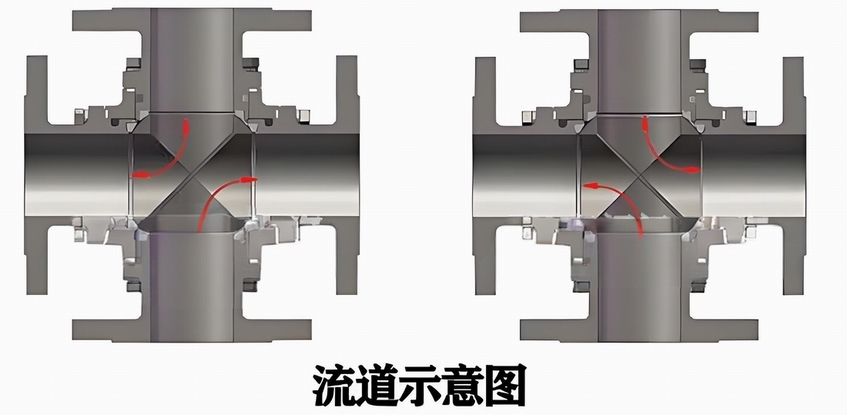 進口法蘭球閥由LL型四通球閥組成,"LL"型四通球閥只需操作板手或執行器將球體轉動90°,同時對兩種介質的流向進行切換,即方便而迅速,實現一閥多用的效果。X形垂直通道的球閥,它的特點是球體的兩條通道為X形布置,四個通道口徑均布于球體赤道圓周截面上,當球體沿順時針旋轉90°時,能使相對的兩個通道實現兩兩互通。該四通換向球閥,一閥實現正反供水切換,每轉90°,供水方式切換一次。