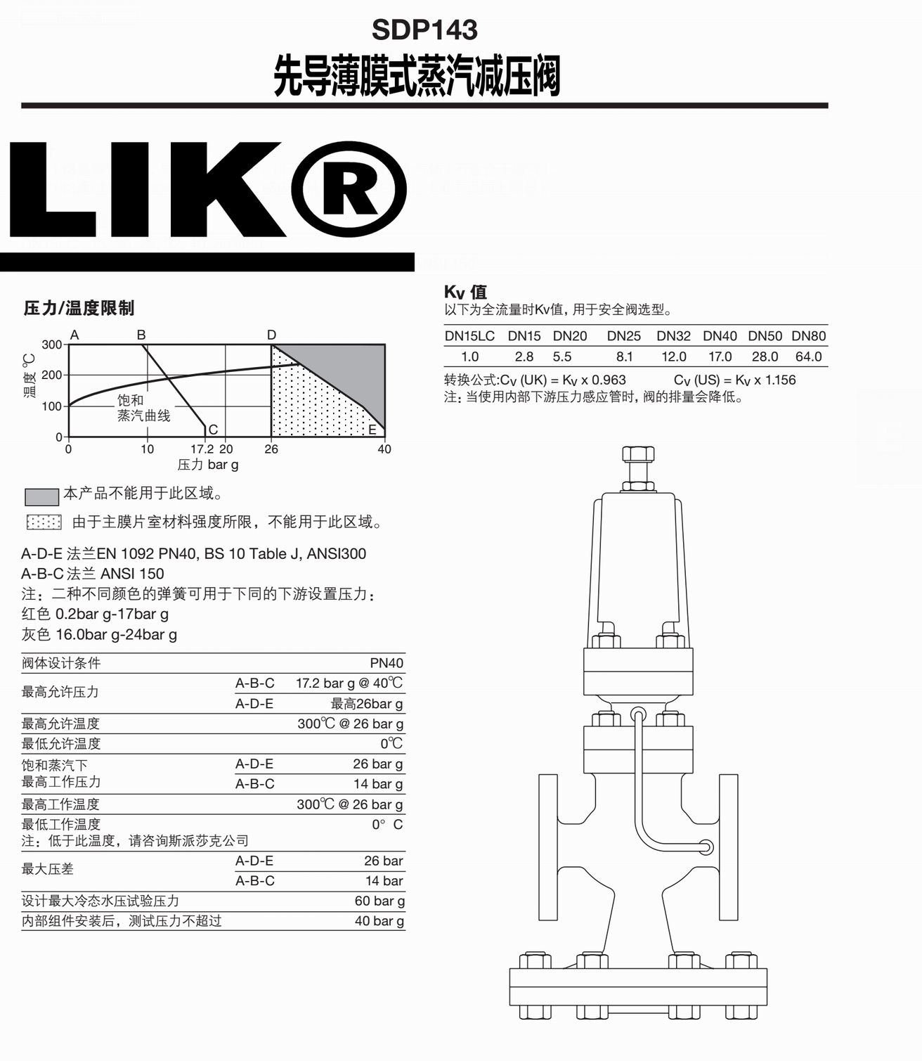 進口先導薄膜式蒸汽減壓閥采用先導閥控制+大膜片執行的雙級結構,通過感應下游壓力變化自動調節主閥開度,實現蒸汽壓力的精準穩壓。其核心優勢在于高精度控制(±0.5%~1.5%)和大流量適應性(DN150閥體流量達25t/h@4MPa)。典型應用壓力范圍0.02~6.4MPa,耐溫最高450℃。